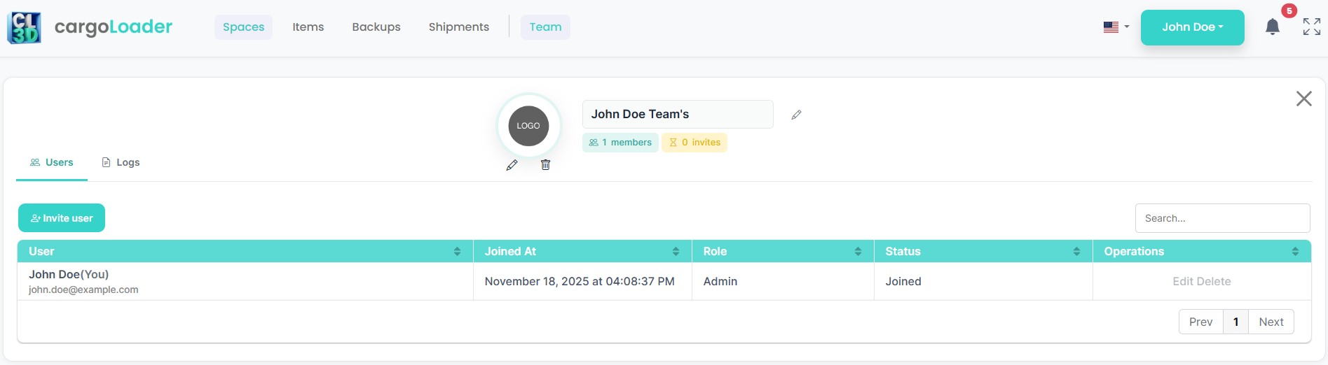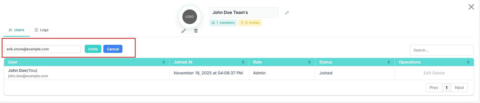 显示团队Logo、名称、活跃成员数量及待处理邀请。 -