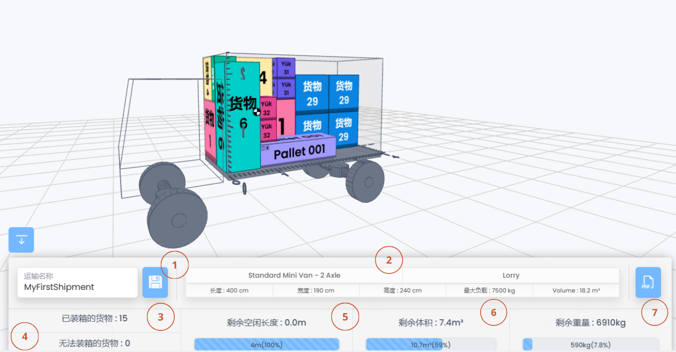 每次调整或重新加载装运时,这些数值都会动态更新,为您提供即时的装载效率反馈。