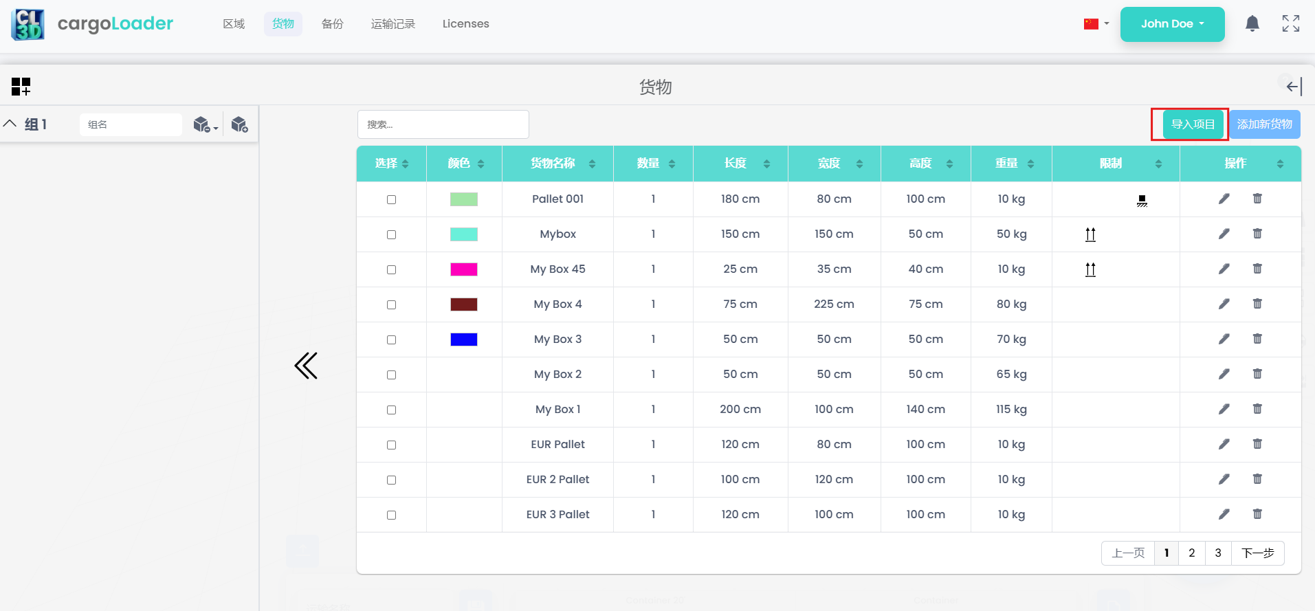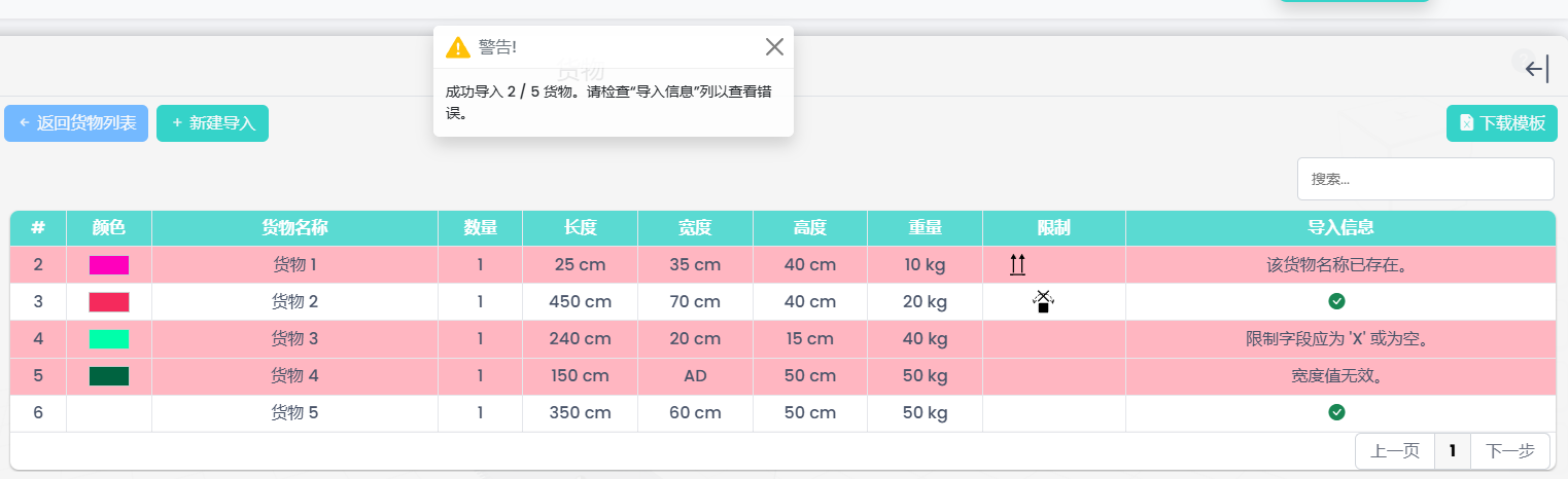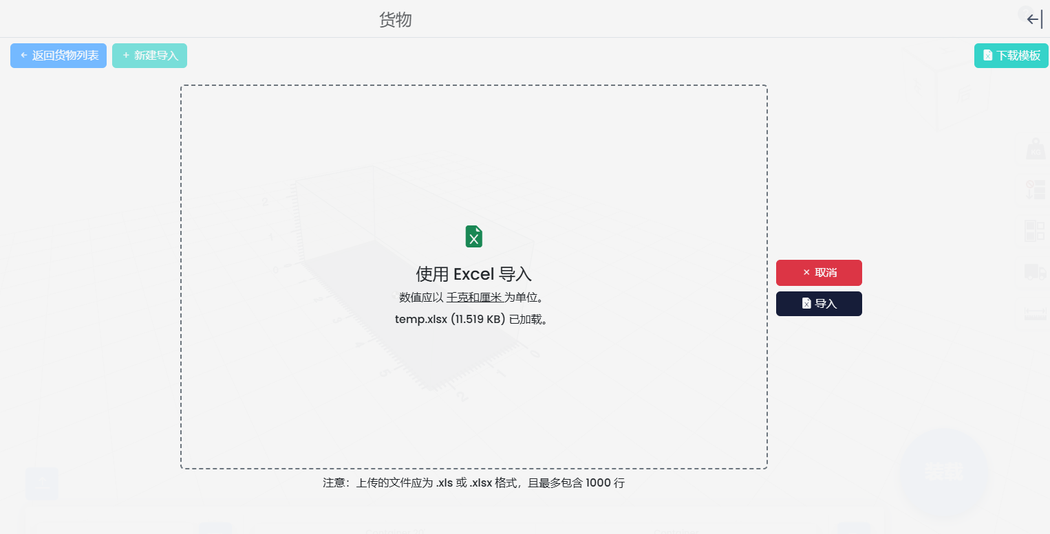 上传后,点击“导入”按钮将数据加载到系统中。
