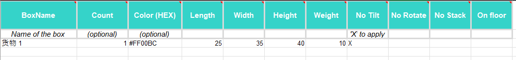 - No Tilt / No Rotate / No Stack / On Floor:限制项(用 X 标记启用)。