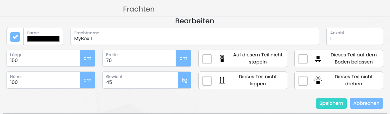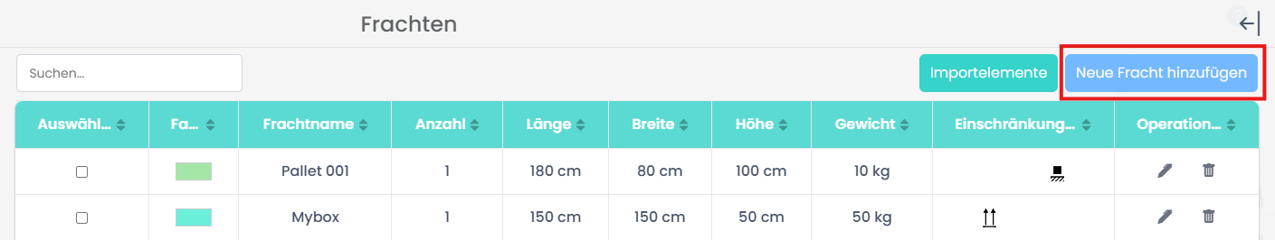 Wenn Sie häufig dieselben Artikelkonfigurationen verwenden, können Sie diese in der Datenbank speichern, anstatt sie jedes Mal neu zu erstellen. Dadurch können vordefinierte Artikel schnell ausgewählt und wiederverwendet werden, was die Effizienz und Konsistenz Ihrer Ladepläne verbessert.