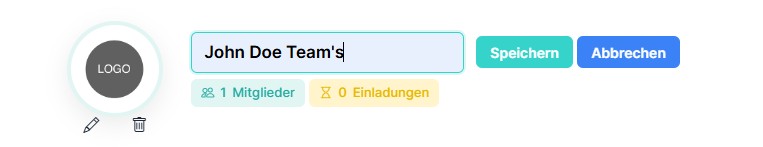 Nachdem Sie auf das Symbol geklickt haben, wird das Namensfeld bearbeitbar. Geben Sie den neuen Teamnamen ein und klicken Sie auf Save, um zu bestätigen, oder auf Cancel, um die Änderungen zu verwerfen.