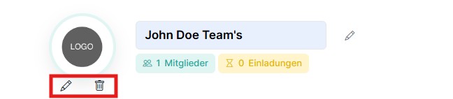 Administratoren können den Teamnamen oder das Logo über die Bearbeitungssymbole aktualisieren.
