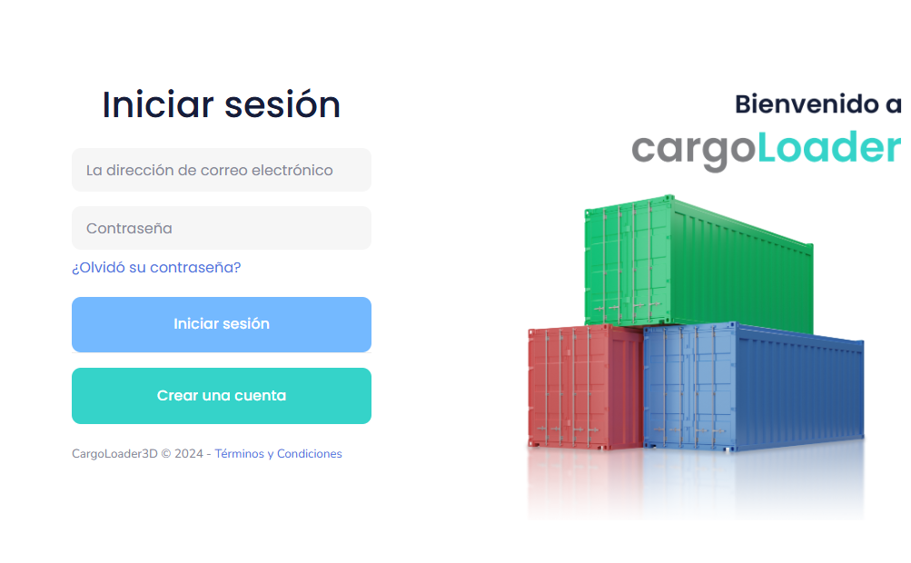 Si fuiste redirigido a la pantalla de inicio de sesión mediante el botón «Log In» en el sitio web de CargoLoader3D, puedes acceder a la página de registro haciendo clic en el botón «Create Account». Esta acción te redirigirá automáticamente a la pantalla de registro.