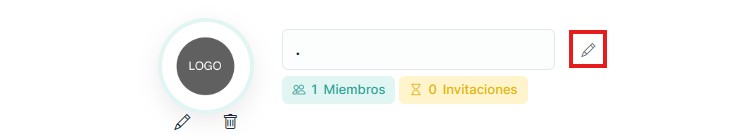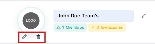 Los administradores pueden actualizar el nombre del equipo o el logotipo utilizando los iconos de edición.