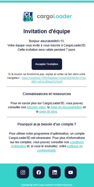Lorsqu’un utilisateur reçoit une invitation, un e-mail contenant les détails de l’invitation est envoyé. L’e-mail inclut un bouton intitulé Accept Invite. En cliquant sur ce bouton, l’utilisateur invité peut finaliser le processus d’inscription et rejoindre l’équipe.