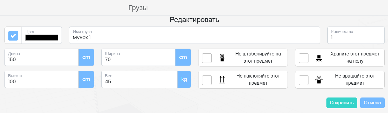 После заполнения всех полей нажмите кнопку «Сохранить», чтобы подтвердить и добавить коробку в список.