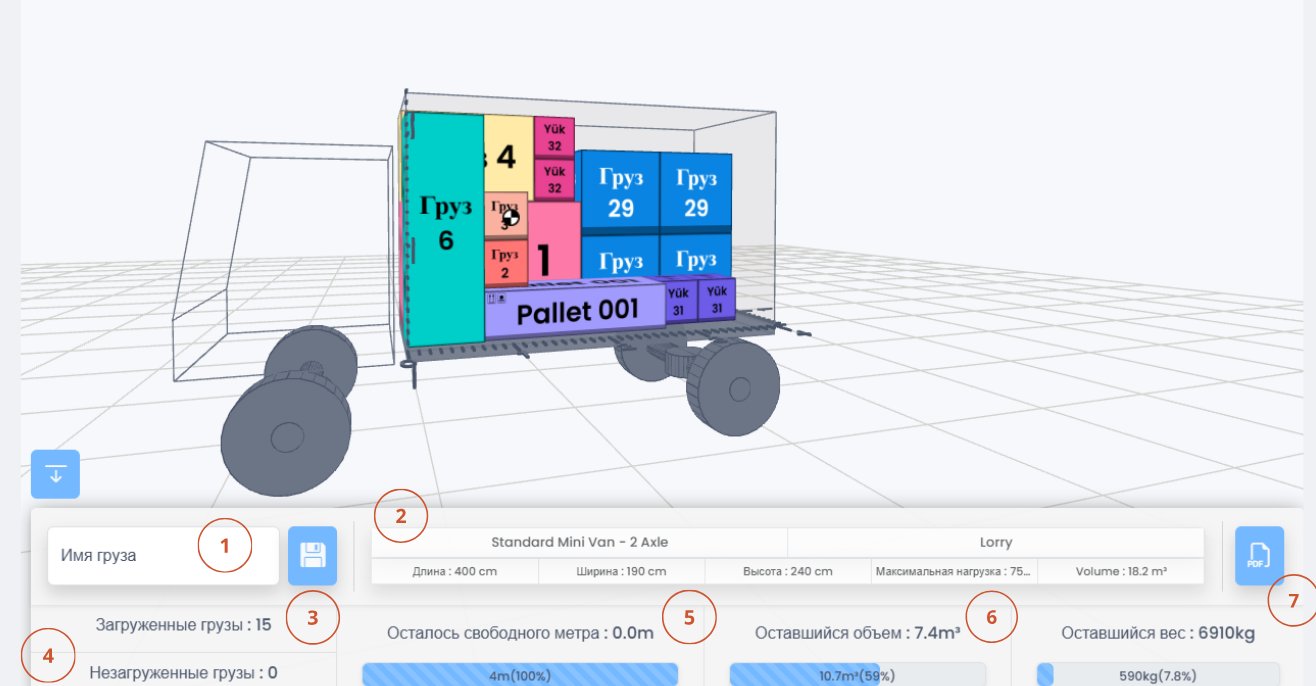 Эти значения обновляются динамически каждый раз при изменении или перезагрузке отгрузки, обеспечивая мгновенную обратную связь об эффективности использования контейнера.