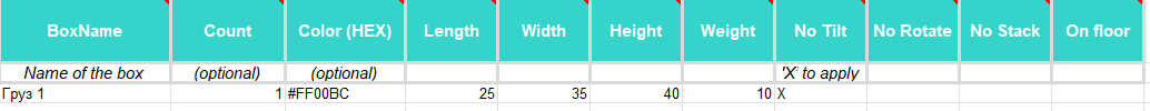 - Поля ограничений должны содержать «X» или быть пустыми.