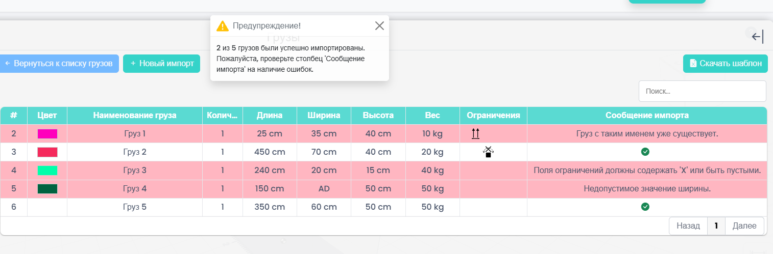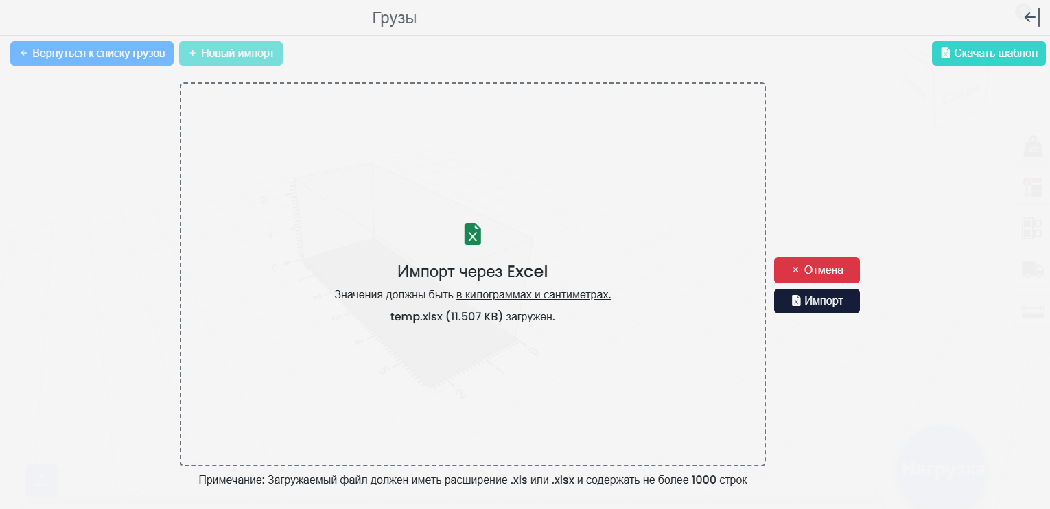 После загрузки нажмите «Импорт», чтобы внести данные в систему.