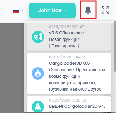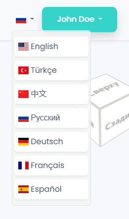 Интерфейс CargoLoader3D поддерживает несколько языков, чтобы обеспечить доступность для пользователей по всему миру. Язык можно изменить с помощью выпадающего меню, расположенного в правом верхнем углу интерфейса приложения. После выбора предпочтительного языка весь интерфейс автоматически переводится, обеспечивая согласованный и локализованный пользовательский опыт во всех функциях и разделах.