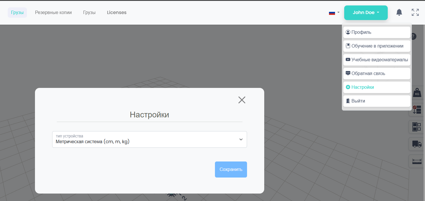 Чтобы изменить систему единиц, откройте панель настроек через пользовательское меню в правом верхнем углу. В выпадающем списке «Тип единиц» выберите желаемую систему измерений. После выбора нажмите кнопку «Сохранить», чтобы применить изменения. Система автоматически конвертирует и отобразит все соответствующие размеры и веса.