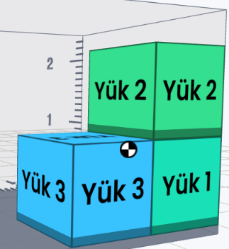 Öğeler eklendikçe, algoritma yüklenmiş kargonun genel ağırlık merkezini sürekli olarak hesaplar.