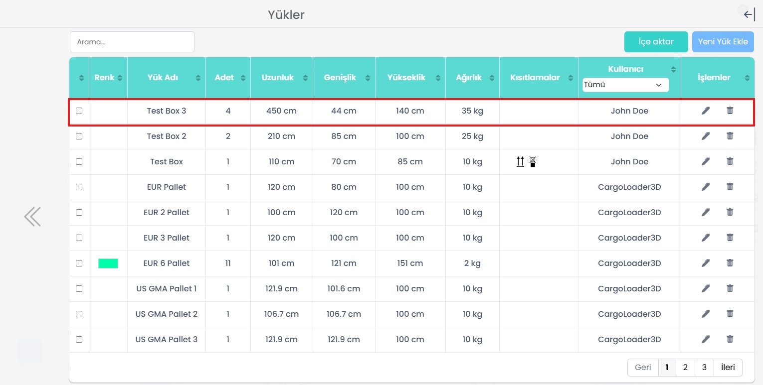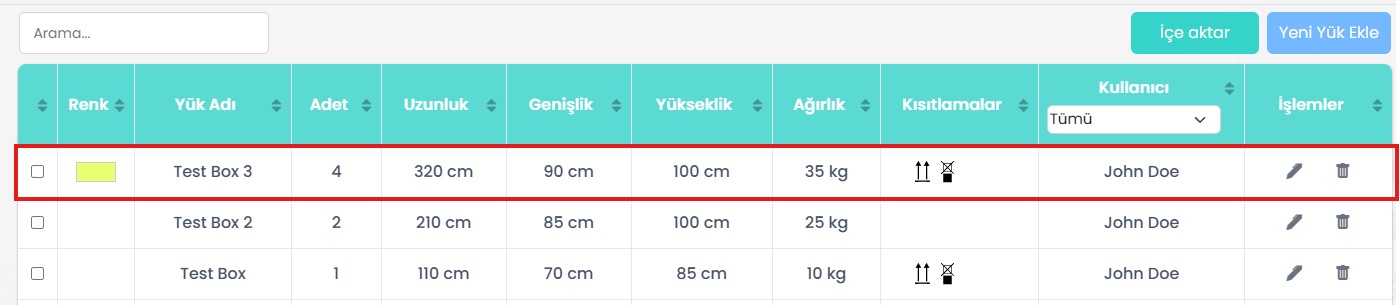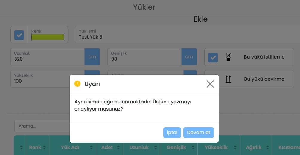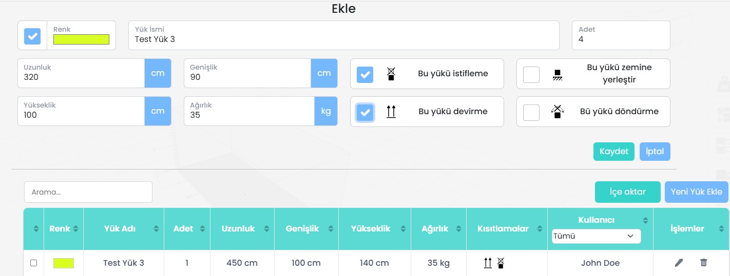 Aynı öğe yapılandırmalarını sık sık kullanıyorsanız, her seferinde yeniden oluşturmak yerine bunları veritabanına kaydedebilirsiniz. Bu, önceden tanımlanmış öğeleri hızlı bir şekilde seçip yeniden kullanmanıza olanak tanır ve yükleme planlarınızda verimliliği ve tutarlılığı artırır.