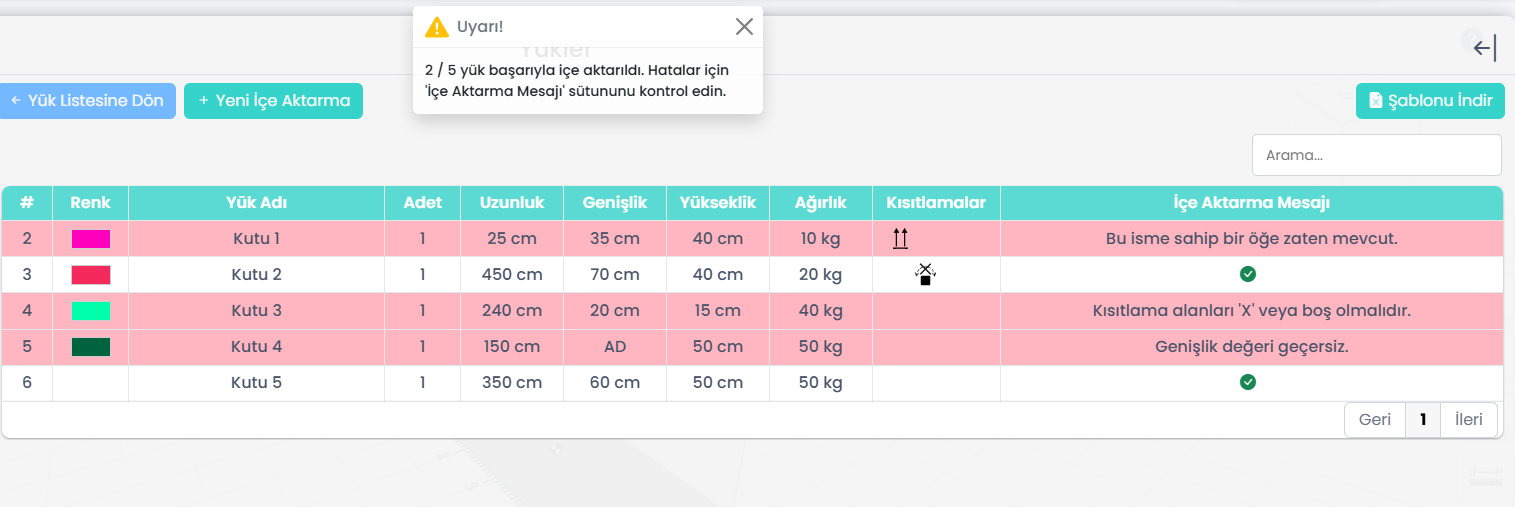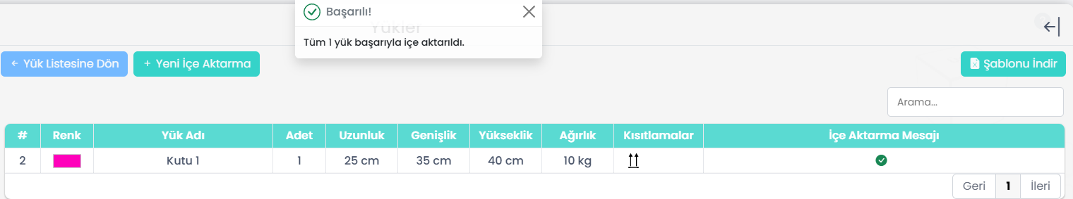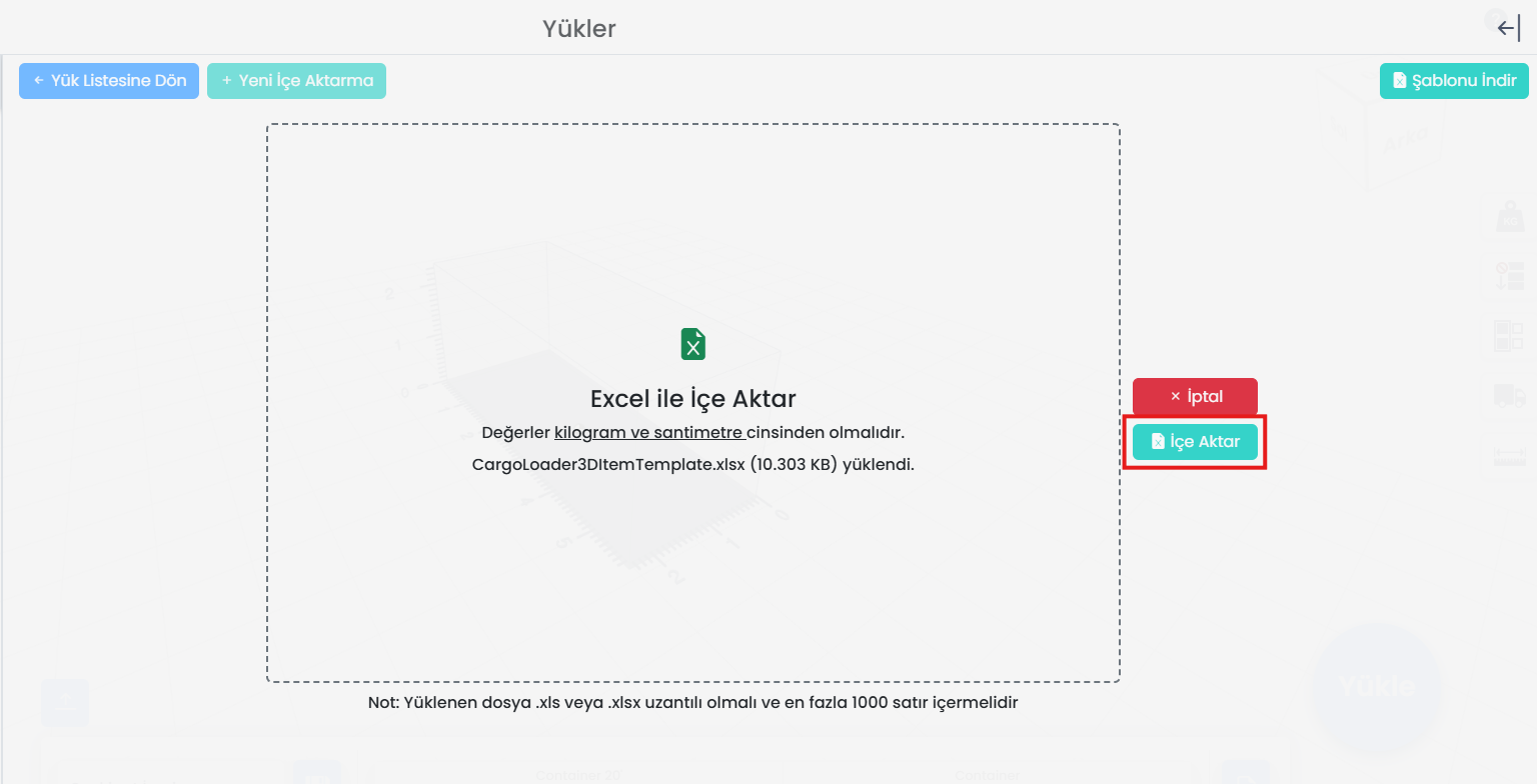 Yükleme tamamlandıktan sonra, verilerinizi sisteme aktarmak için İçe Aktar düğmesine basın.