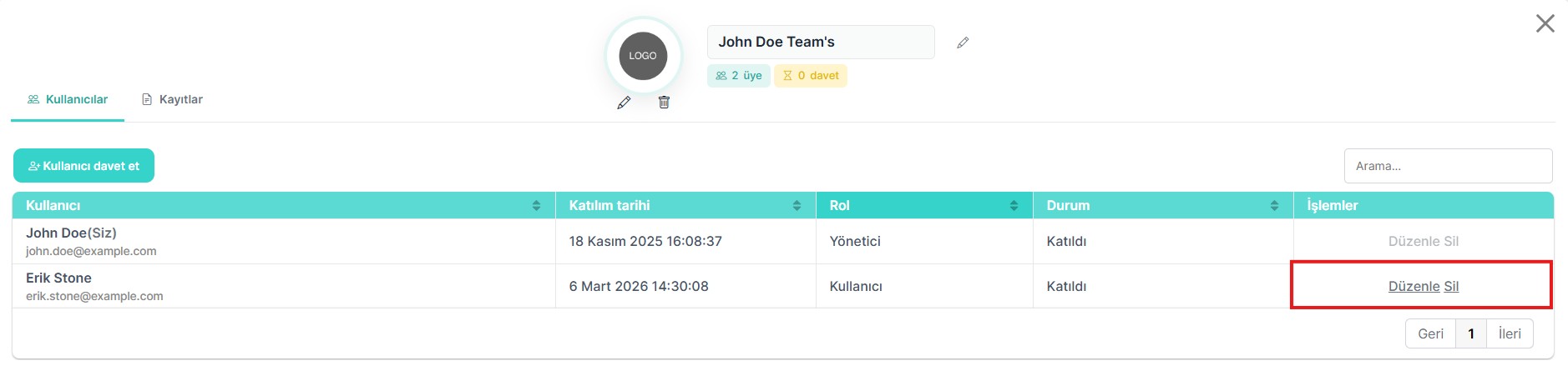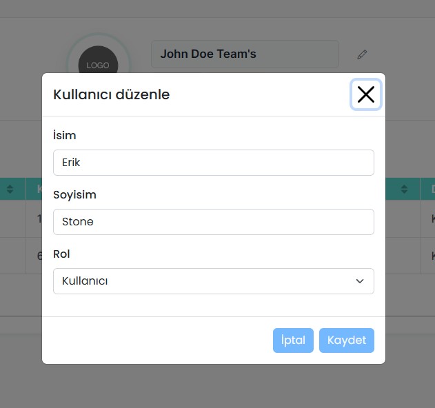 Edit User özelliği, yöneticilerin kullanıcı bilgilerini güncellemesine ve takım içindeki kullanıcı rollerini değiştirmesine olanak tanır. Bu arayüz üzerinden yöneticiler izinleri yönetebilir ve takım üyelerinin uygun erişim seviyesine sahip olmasını sağlayabilir.